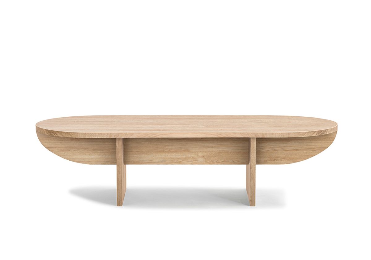 Keel is a coffee table with simple geometric shapes that create an elegant contrast between the smooth tabletop and the tight lines of the frame.