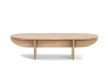 The table is available in three different sizes and various finishes: natural, black, and smoked oak,
